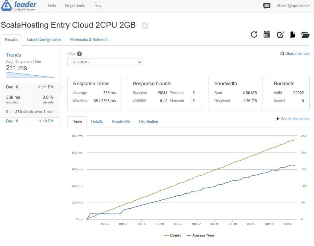 ScalaHosting’s TTFB consistently stayed below 180ms, which is exceptional for a managed VPS. Page load times averaged under 300ms, placing it among the fastest hosts we’ve tested in 2026.