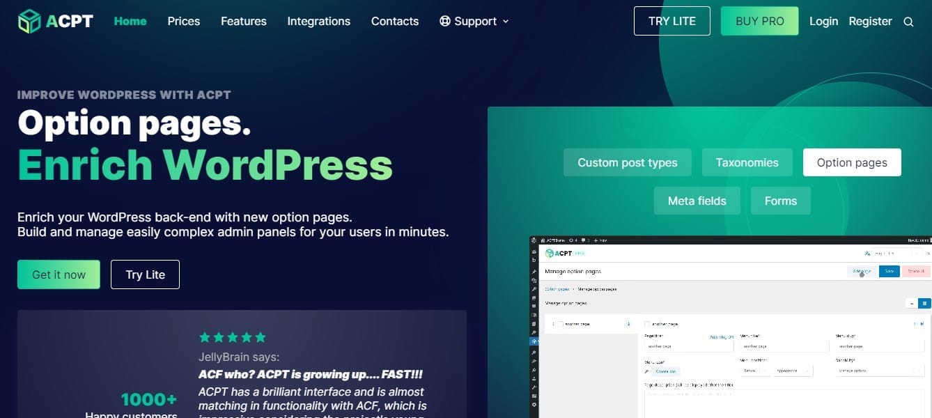 ACPT ist ein umfassendes dynamisches Daten-Framework, das Nutzer befähigt, benutzerdefinierte Beitragstypen, Taxonomien, Optionsseiten und Formulare zu erstellen und zu verwalten.