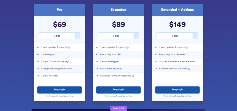 Advanced Product Fields for WooCommerce has a very straightforward pricing plan.