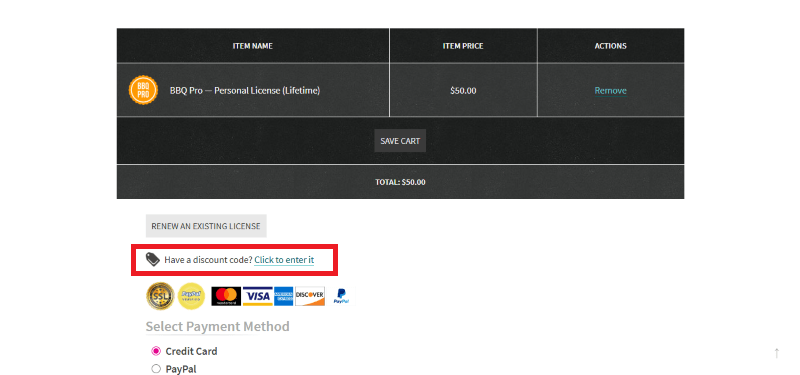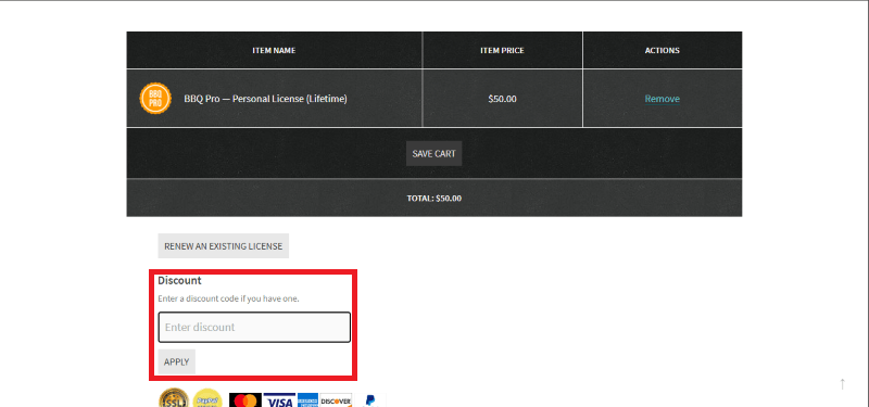 Step 2: On the BBQ Pro checkout page, click on “Have a Discount code”