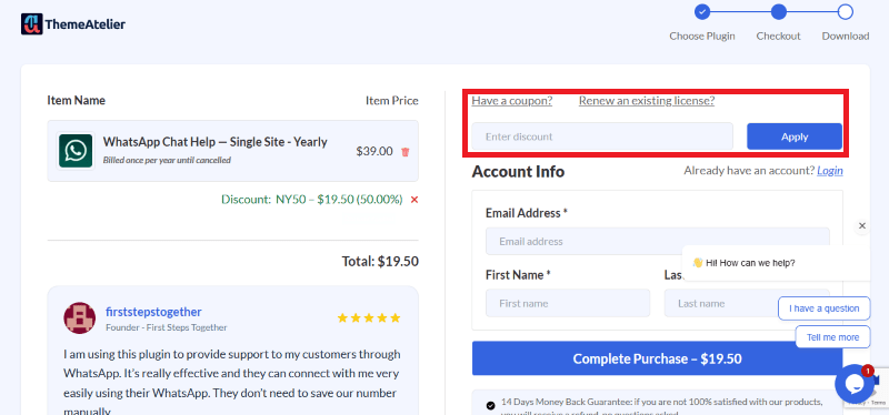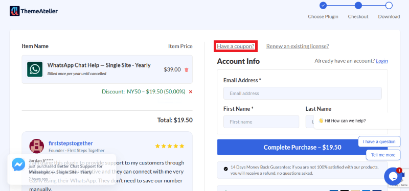 Step 2: On the ChatHelp checkout page, click on “Have a Coupon code”