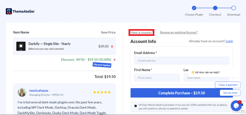 Step 2: On the Darkify checkout page, click on “Have a Coupon code”