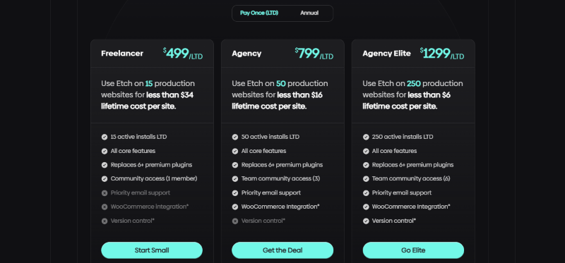 EtchWP has a very straightforward pricing plan.