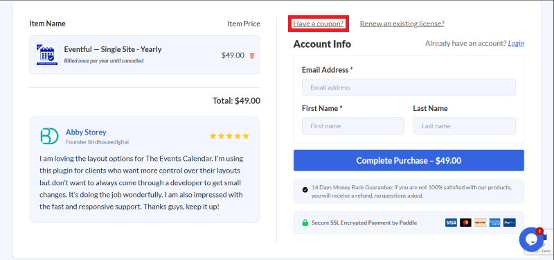 Step 2: On the Eventful checkout page, click on “Have a Promotional code”