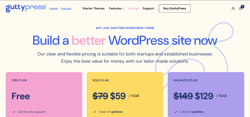 GuttyPress has a very straightforward pricing plan.
