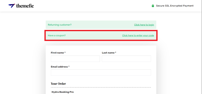 Step 2: On the Hydra Booking checkout page, click on “Have a Promotional code” or “Coupon Code.”