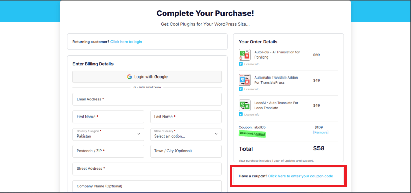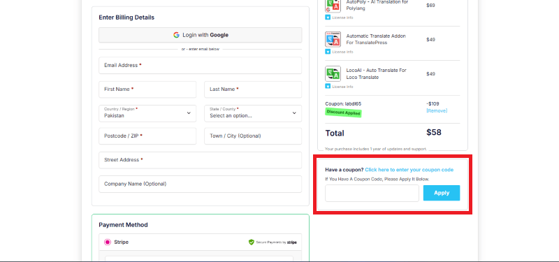 Step 2: On the LocoAI checkout page, click on “Have a Promotional code”