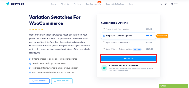 Step 1: Go to The Variation Swatches For WooCommerce Coupon and select the plan you want to buy, and click on Add to card.