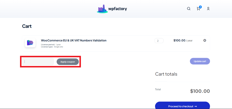 Step 3: Add the discount code in the field and click “Apply coupon” to get the discount.