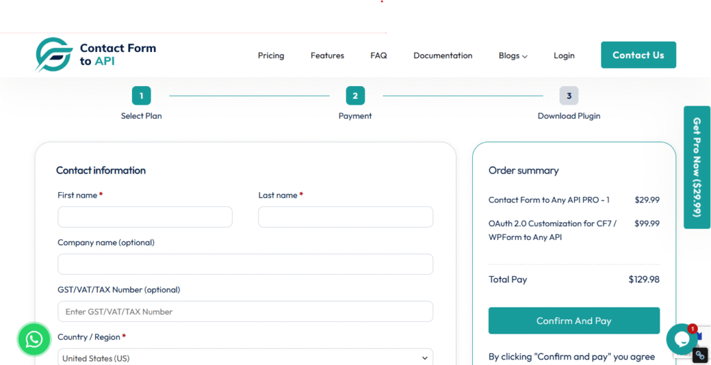 Step 1: Download the Plugin. Visit the Contact Form to API, choose your preferred version (Free or Pro), and download the ZIP file. If you purchased the Pro version, your download link and license key will be sent to your registered email.